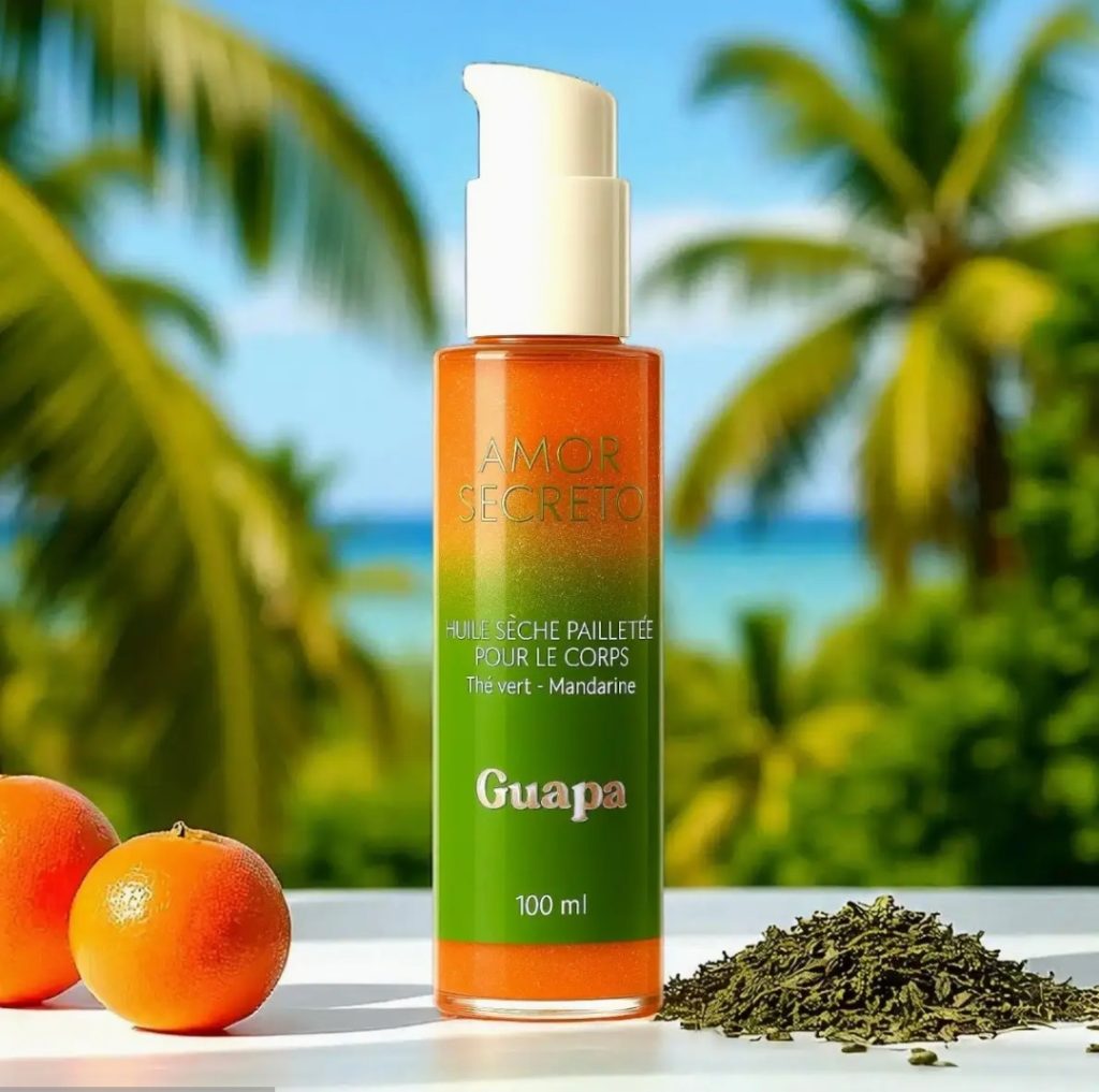 Description HUILE SÈCHE – THE VERT MANDARINE Thé vert – Mandarine Un souffle frais, une lumière vive… Laissez votre peau s’illuminer sous l’énergie éclatante de l’été. Cette huile sèche pailletée associe la vitalité acidulée de la mandarine à la fraîcheur vivifiante du thé vert, pour un moment sensoriel à la fois rafraîchissant et lumineux. Sa texture légère glisse sur la peau sans effet gras, déposant un voile satiné délicatement parfumé. Les micro-paillettes captent la lumière et subliment chaque mouvement, réveillant l’éclat naturel de votre peau. Dès la première application, elle offre une sensation de fraîcheur instantanée, comme une brise d’agrumes…